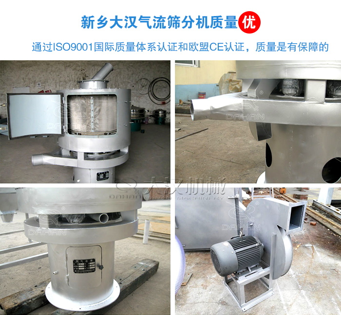 大漢氣流篩分機(jī)通過ISO9001國際質(zhì)量體系認(rèn)證和歐盟CE認(rèn)證,質(zhì)量是有保障的,大漢機(jī)械值得您信賴。