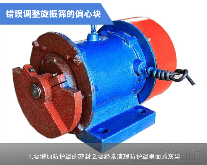 調(diào)整圓振動篩偏心塊時,誤把兩端偏心塊的方向調(diào)反,使振動電機產(chǎn)生一個空間扭矩,使振動電機在非正常狀態(tài)下工作,進而引起燒毀。因此調(diào)整偏心塊時,一定要注意其對稱性,即兩端偏心塊要兩兩對應(yīng),或者說是兩端偏心塊的重心連接線要與轉(zhuǎn)軸平行,不能成異面狀態(tài)。由于振動電機的工作環(huán)境大都非常惡劣、粉塵大,如果防護罩密封不嚴(yán),很容易進灰塵,引起偏心塊的摩擦運轉(zhuǎn),從而燒毀電機。所以在工作環(huán)境惡劣的地方,